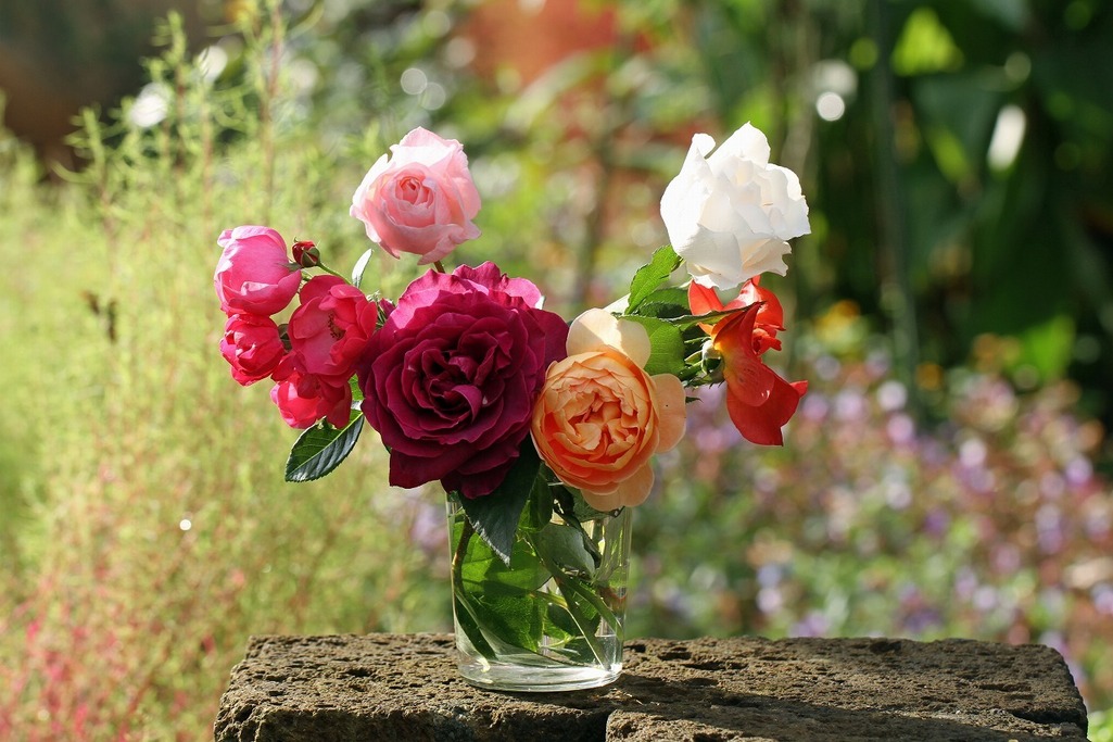 色とりどりのバラがお庭に咲いているんですね。とっても綺麗です。