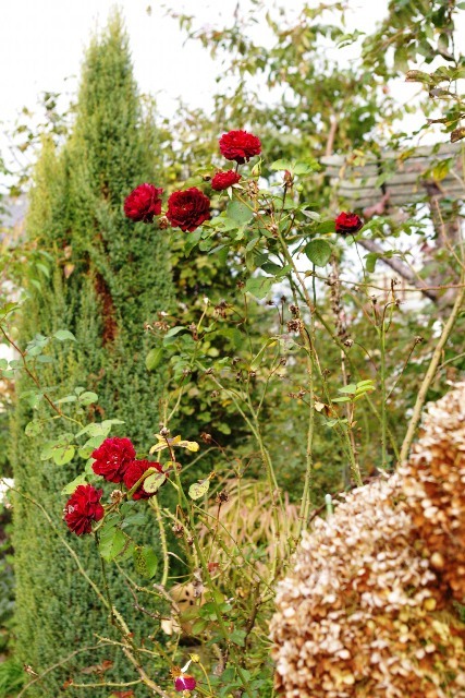 この時期に庭に赤いバラがあるととっても目を引きますね。