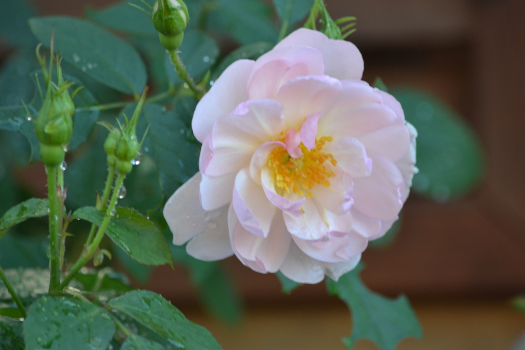 雨に打たれても可憐でやさしい感じは変わりませんね。蕾がたくさんあるのでまだまだ咲いてくれますね。