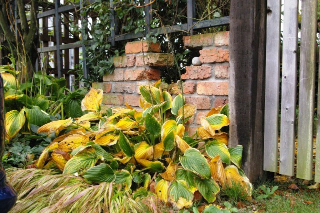 お庭の入口前にこんな大きな株のホスタとフウチソウがあるんですね。ガーデナーとしての長い歴史を感じます。