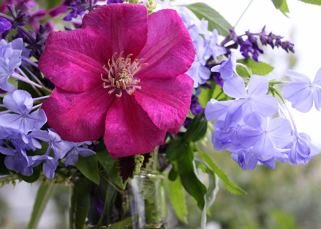 後ろのルリマツリとセージの色がこのクレマチスの色をとっても引き立てていて素適なアレンジですね。