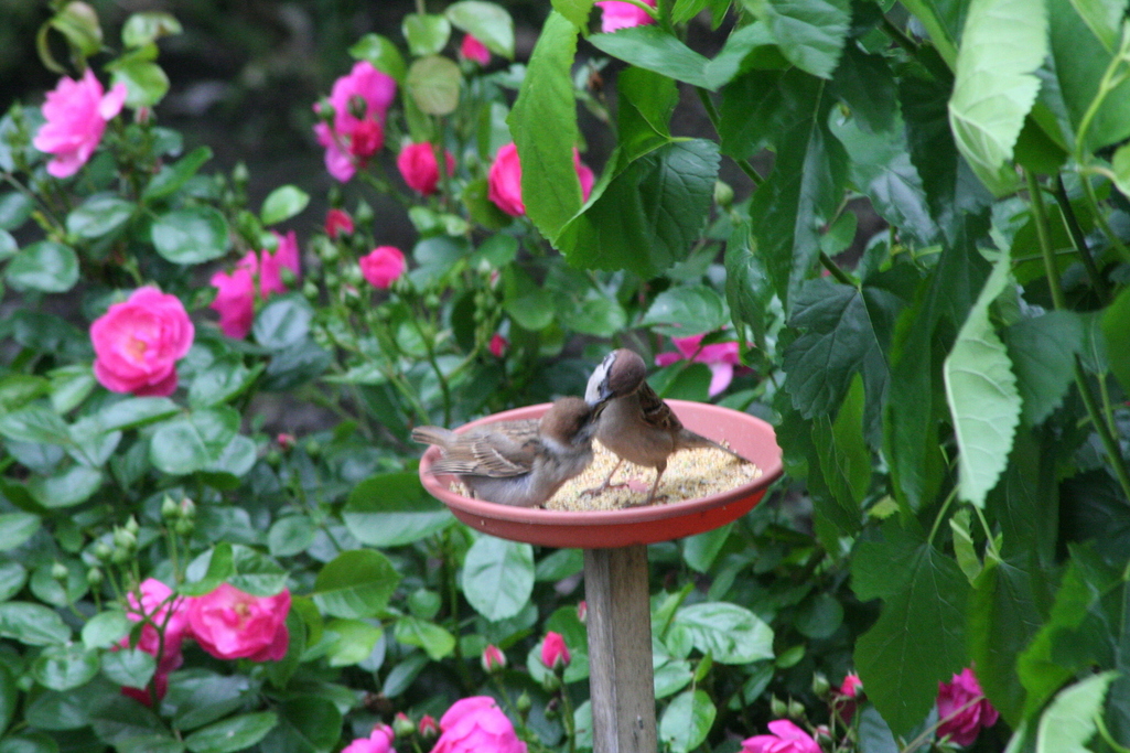 まだ ひなひなしい雀ですね。このお庭なら幸せに成長しそう。