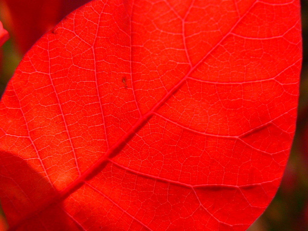 とっても綺麗な燃えるような赤ですね。うちのスモークツリーも紅葉していますがこんなに綺麗な色にはなりませんよ。