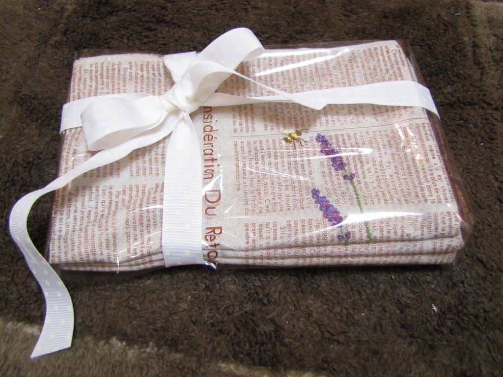 オシャレな透明の包み紙に白いリボン・・・透けて刺繍が立体的に見えてほんとに蜂が飛んでいるような面白い演出