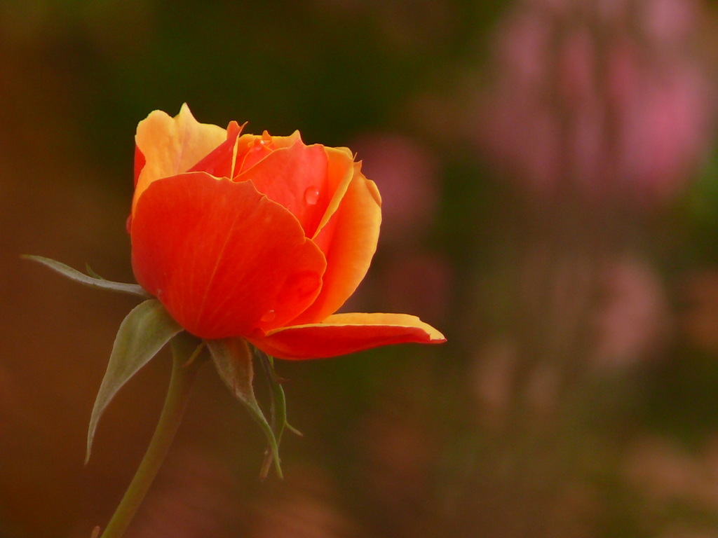 とても派手なオレンジ色を、とても控えめに表現している薔薇ですね!