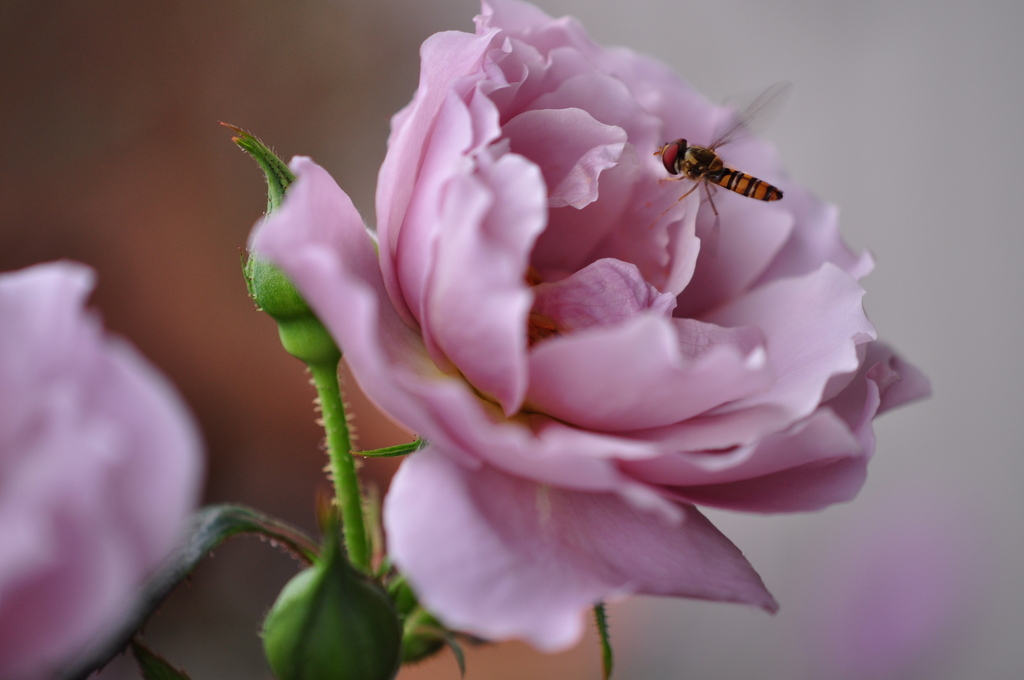 ホバリングしながら何を思ってるんでしょうね!とても素敵な薔薇に戸惑っているのかな(^0^)