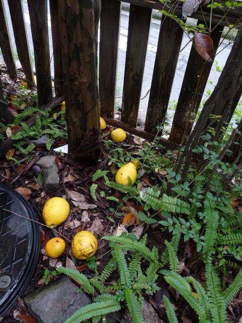 泉佐野の雑木林:こんな感じで落ちたカリンわぁ~・・・