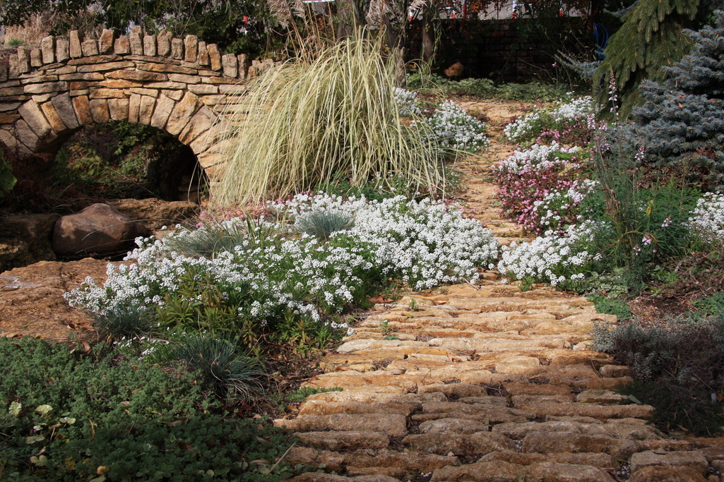 アリッサムとポリゴナムに覆われた小道、素敵ですね!