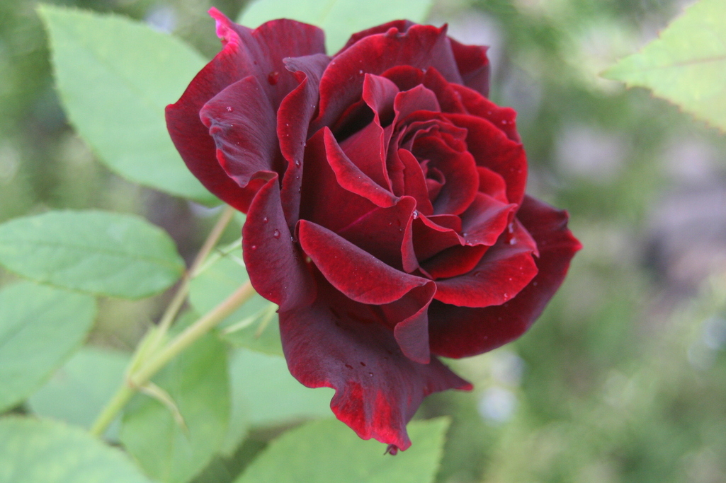本当にベルべットのよう・・・素敵な色の薔薇ですね!水滴のアクセサリーで一層美しいですね。