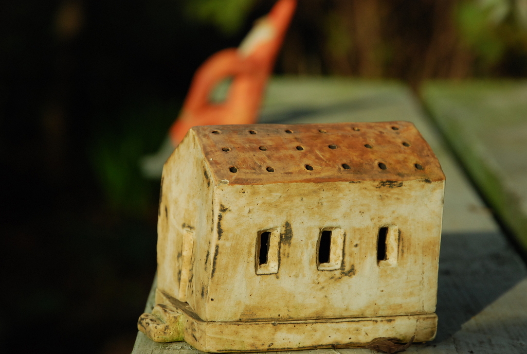 夕日が当たった陶器の家、素敵です。