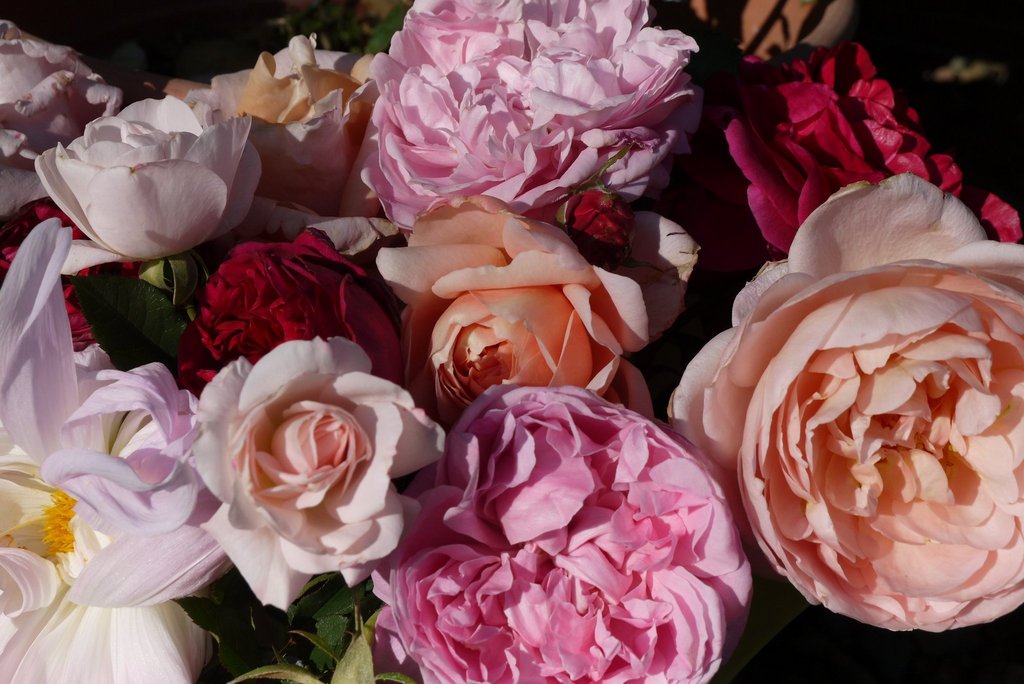 いろいろ咲いてますね~(*^^*) あっちこっちに咲いてるバラを集めると豪華でいいですね。このまま花束になりそうです^^