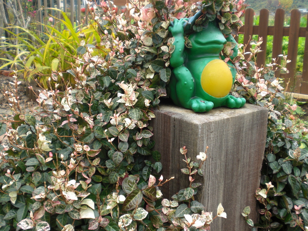 見事に茂った初雪かずらに、カエルくんも埋もれてしまいそうです。