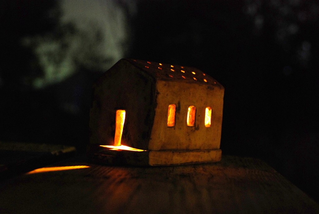 アッ、灯が入った。素敵。おうちの中に物語がありそう!(^^)!。