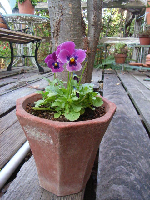 すてきな鉢ですネ!ビオラが大きく育ってたくさん咲いたら、もっと素敵になるんでしょうね~(*^^*)