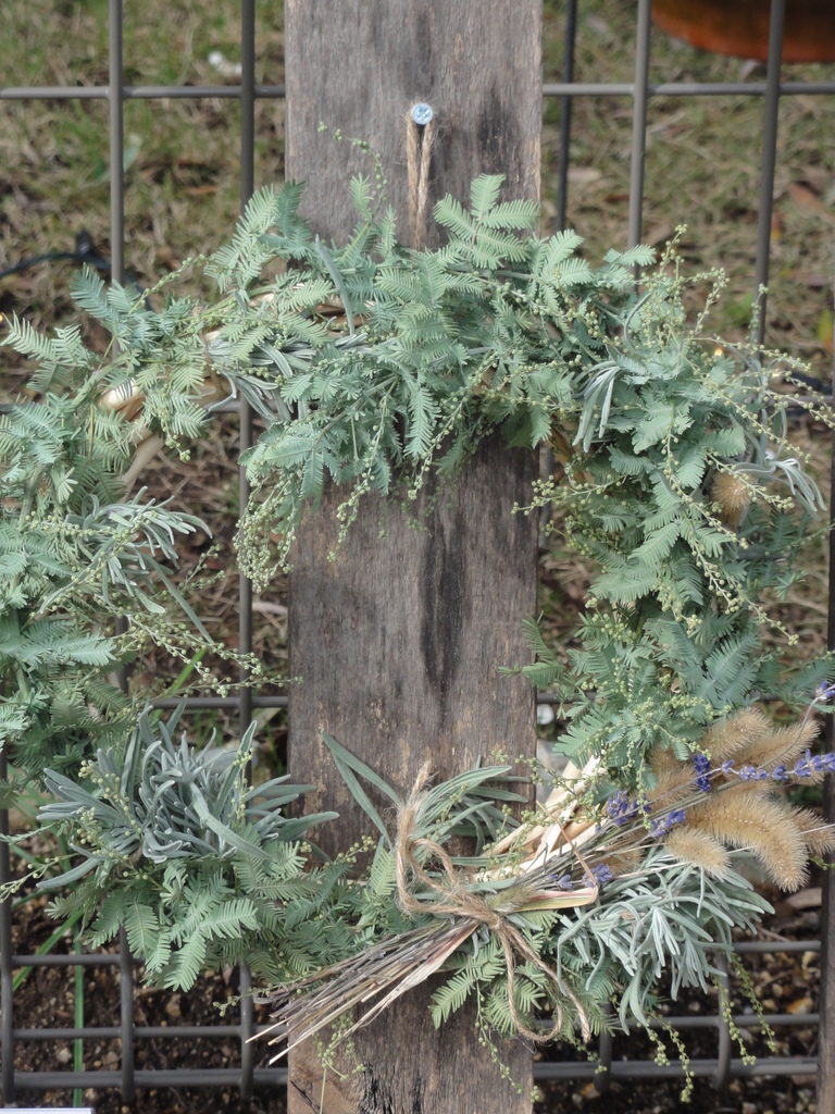 いい香りがしそうなリースですね^^ エノコロ草とラベンダーの花束が可愛いアクセントになってますね!