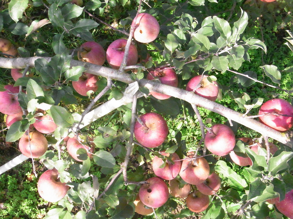 上から見るリンゴは初めてです。木の上に登られて撮られたのでしょうか??
