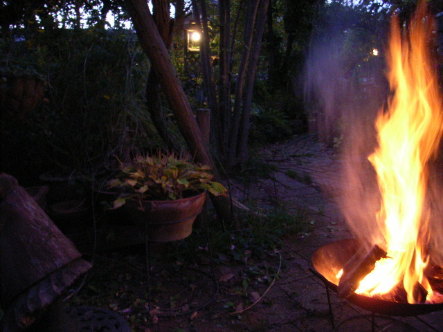 待ってました焚火!燃えろよ、燃えろ。今日の炎はやけに大きい。奥の明かりが負けていますね。
