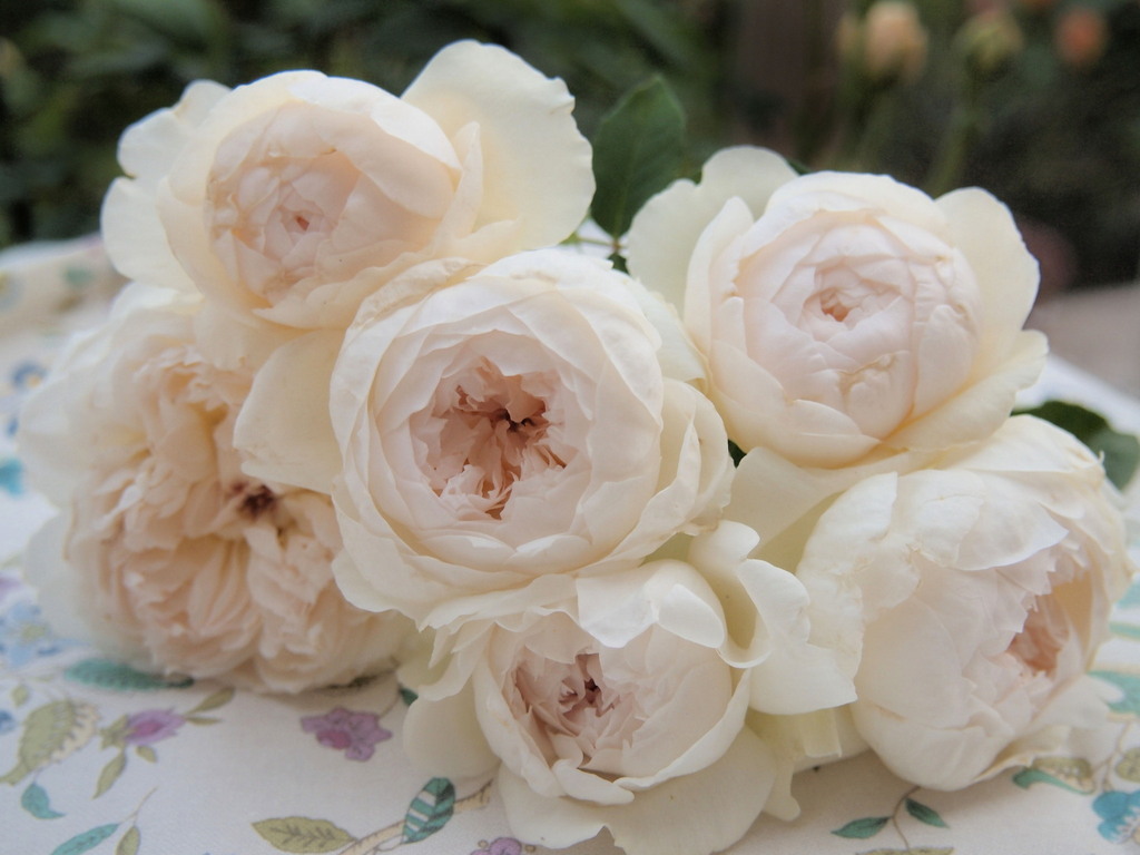 バラの名前はなんでしょう。花嫁たちがふわふわのドレスで集まってるみたい。豪華というかエレガントというか・・・・