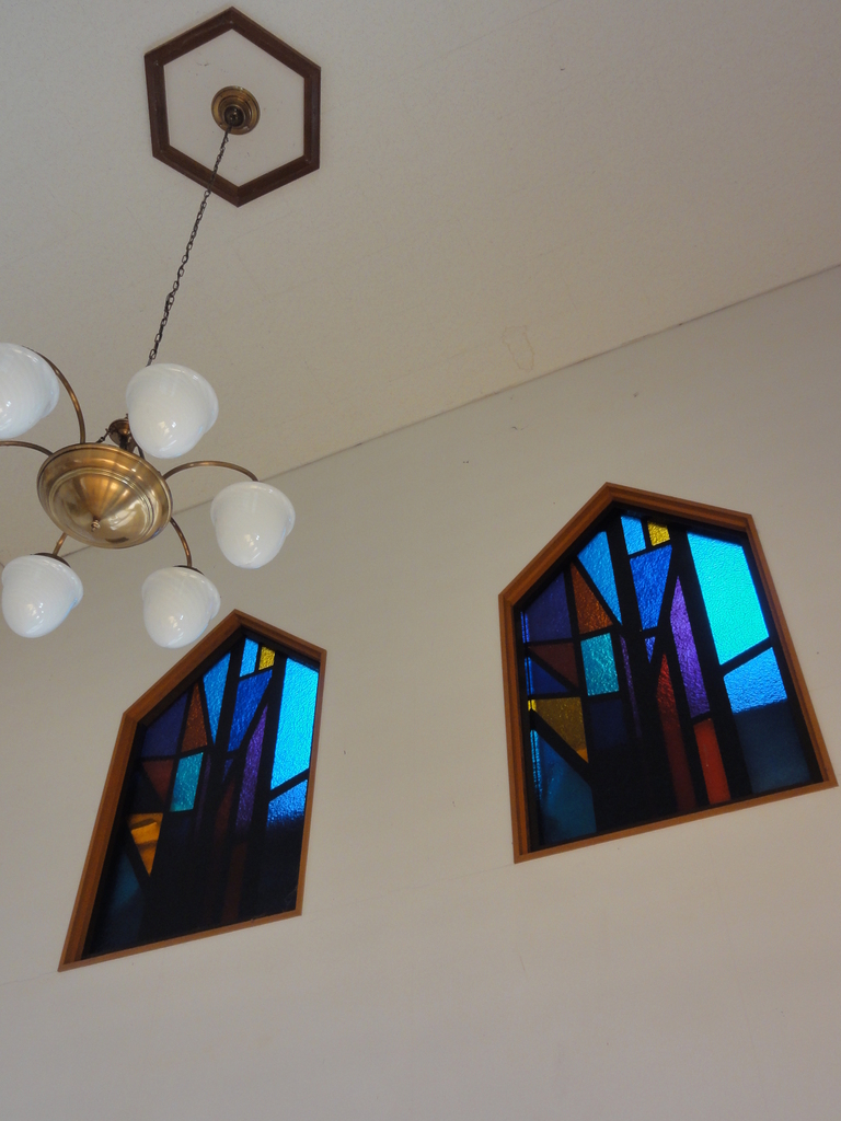 小さな教会のステンドグラス・・・光がたくさん注ぎこんでいます。