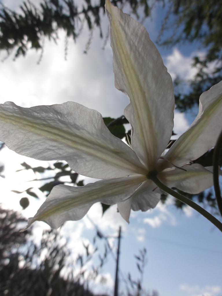 ホント、大空にはばたく白鳥のようですね。白いクレマチスは清楚で爽やかで、青空によく似合いますね(*^^*)