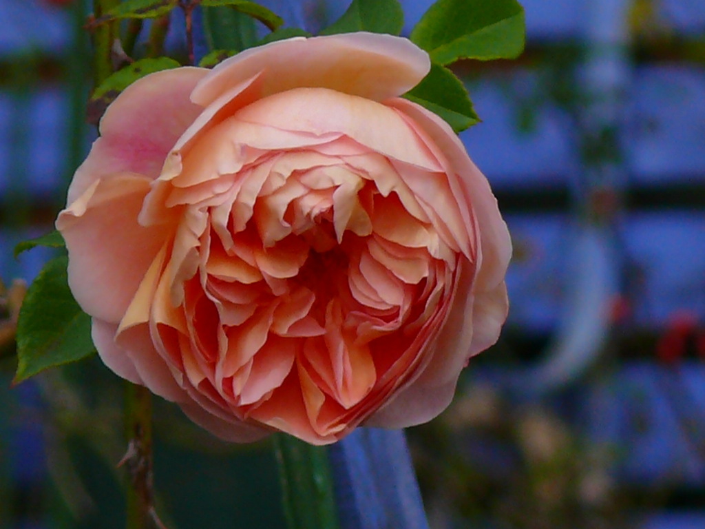 オレンジのようなピンクのような色合いなので青との相性が良いようです。