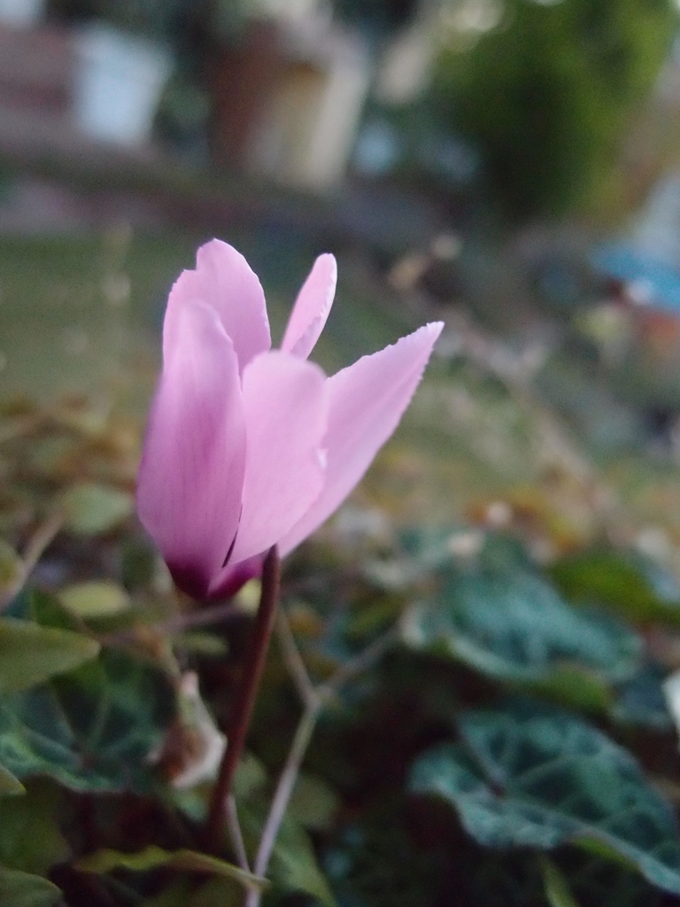 シクラメンがもう咲いたのですね!可愛いですね。私のシクラメンも同じ鉢でずーっと育てているのですが、なぜか毎年4月に咲きます。花が終わるといったん葉がなくなるのですが、秋からまたどんどん葉が出てきます。