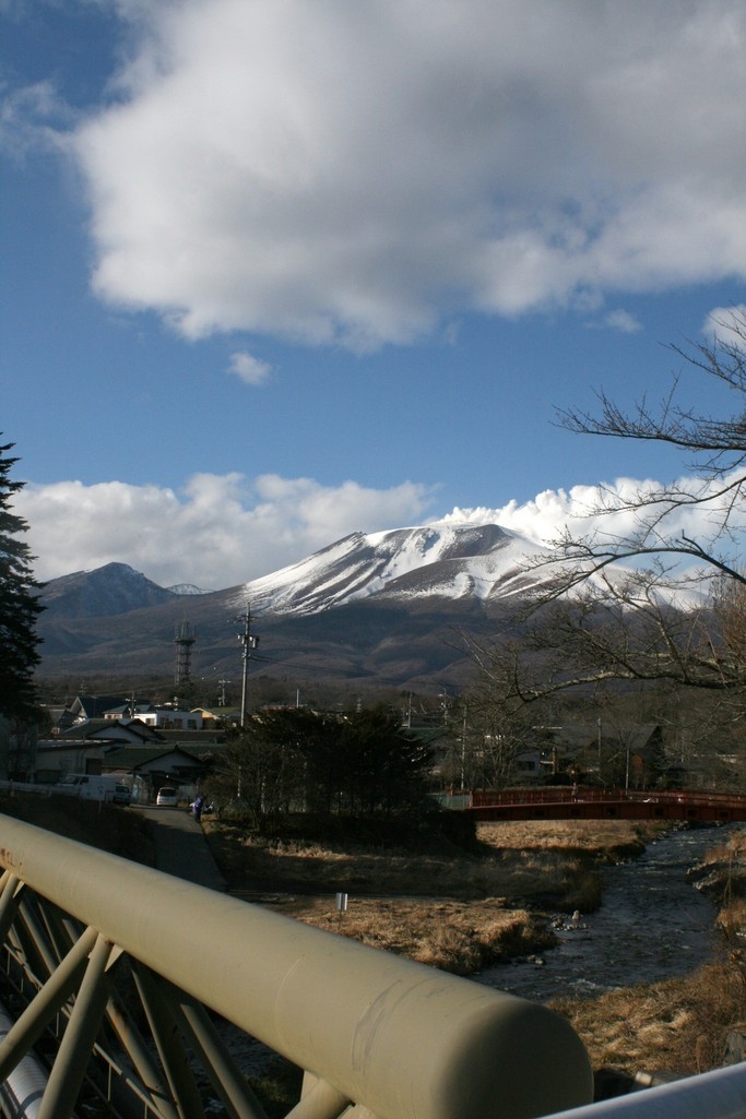 国道18号線の湯川にかかる橋の上から見た浅間山です。