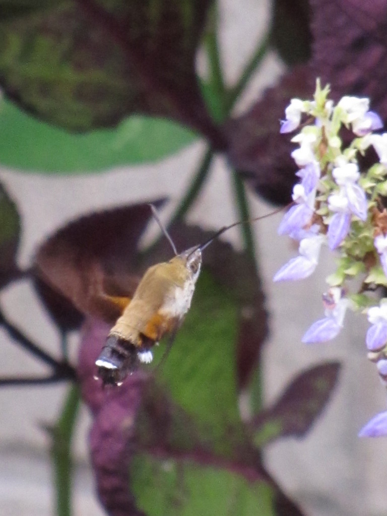 うちにも来ています^^ 卵を産んで幼虫が育つような木は生やしてないので、しっかり食事だけして帰って行きます。長~いストローで蜜を飲んでる所がしっかり写ってますね(*^^*)