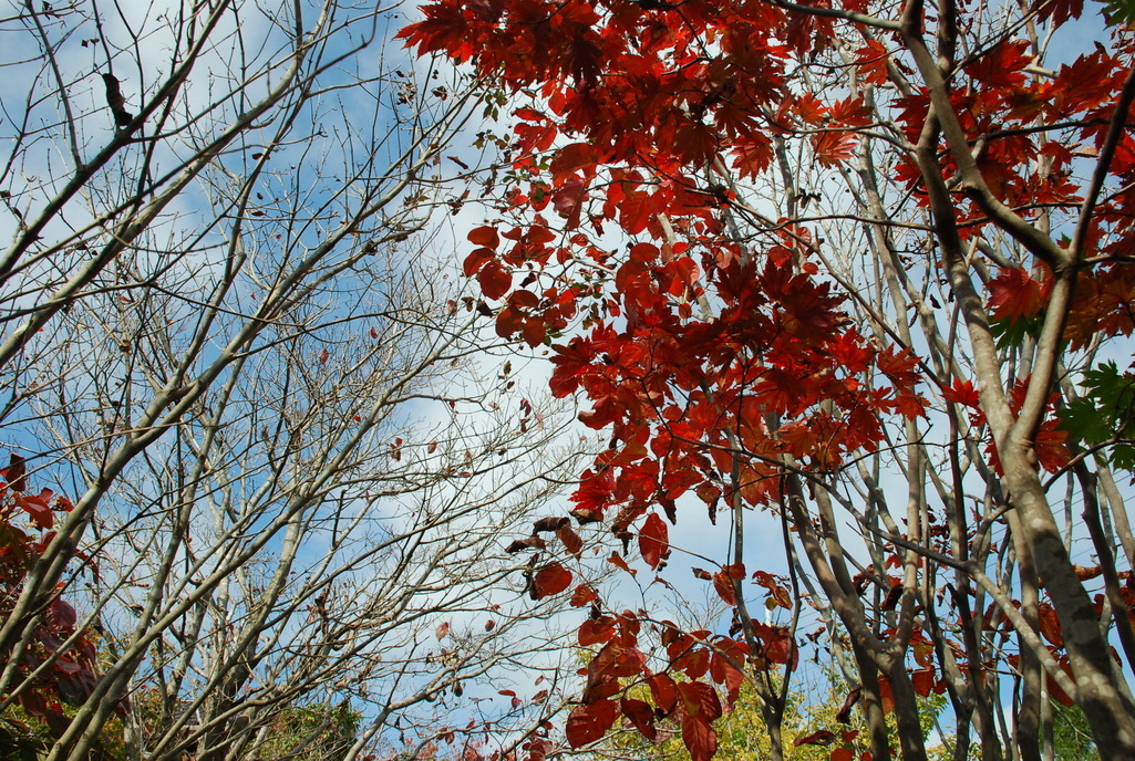 梢だけの木と葉をつけた木の対比が面白いですね。
