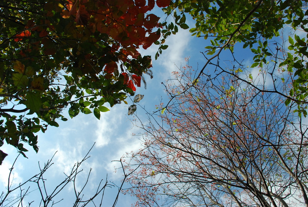 紅葉って自分の感動をどう撮ったらいいか難しいですよね、赤緑青のコラボいいです。