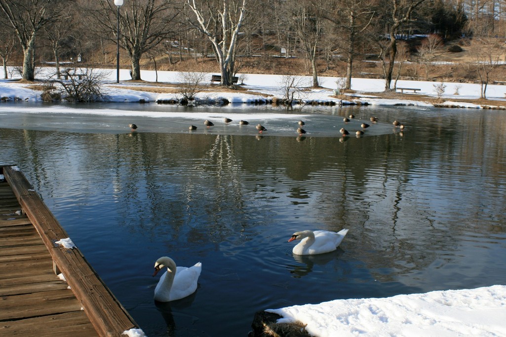 すっごくステキな所ですね!!渡り鳥がいっぱいの冬景色、すばらしいですね!