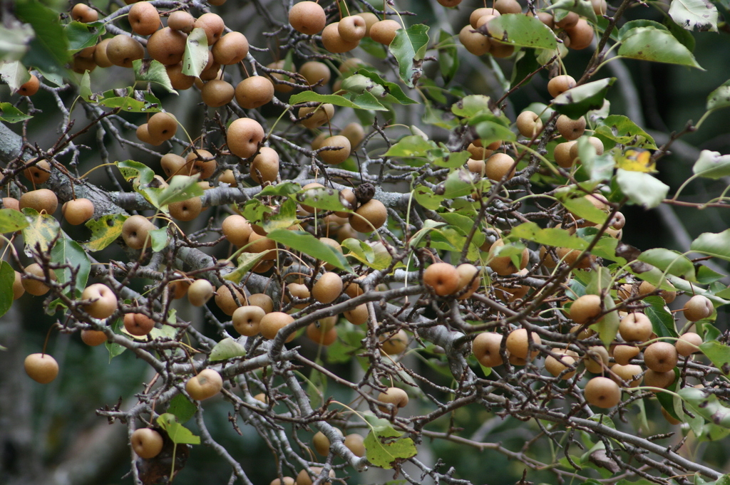こんなに実がなっているのはじめて見ました。梨の原種だけあって果物の梨とをそのまま小さくしただけの形をしてますね、でも食べると美味しくないらしいですが・・・。