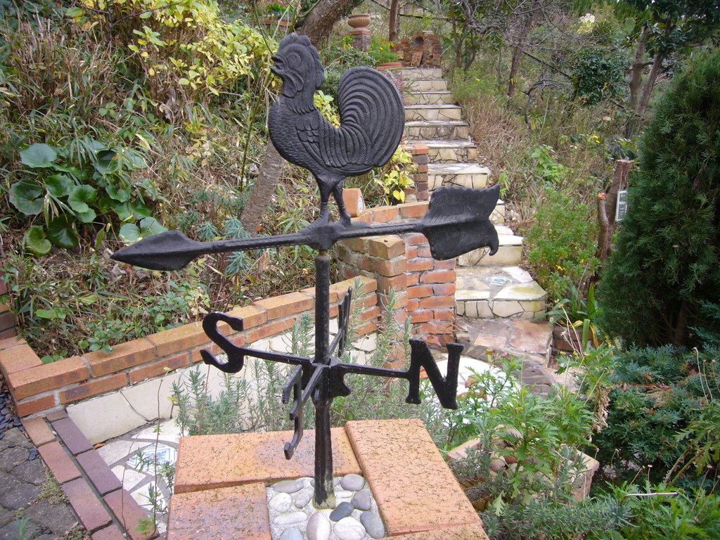 何年もかかって斜面に手作りしたレンガとタイルの階段。