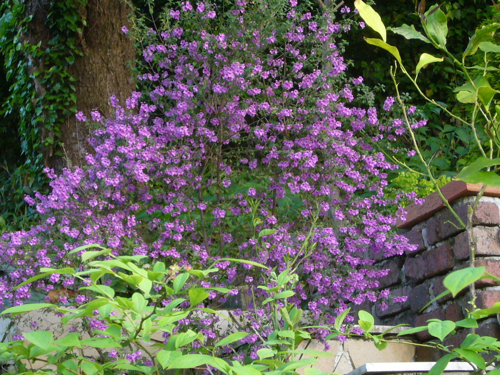 ミントブッシュの花が咲いた時に撮った写真です。庭の斜面の上の方に植えたものです。