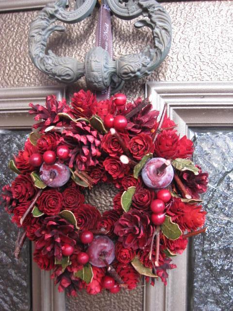 まつぼっくりも赤くペイントしてあるんですね。そのままの色より洗練された印象ですね。
