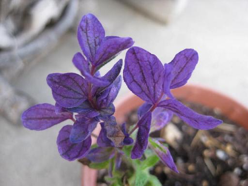 ペインテッドセージ、綺麗なパープルは花ではなく葉の苞が色づいてるものです。