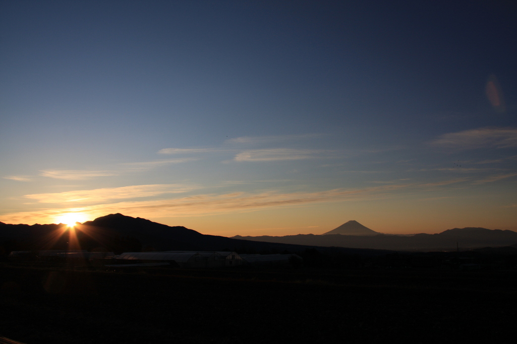 この季節遠く離れたこっちでも天気のいい日の夕方に富士山のシルエットを見ることができます。