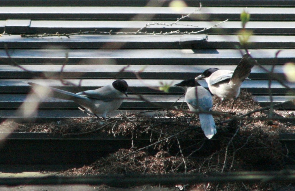 頭に黒い帽子をかぶって、水色のドレス。おされな鳥ですね。