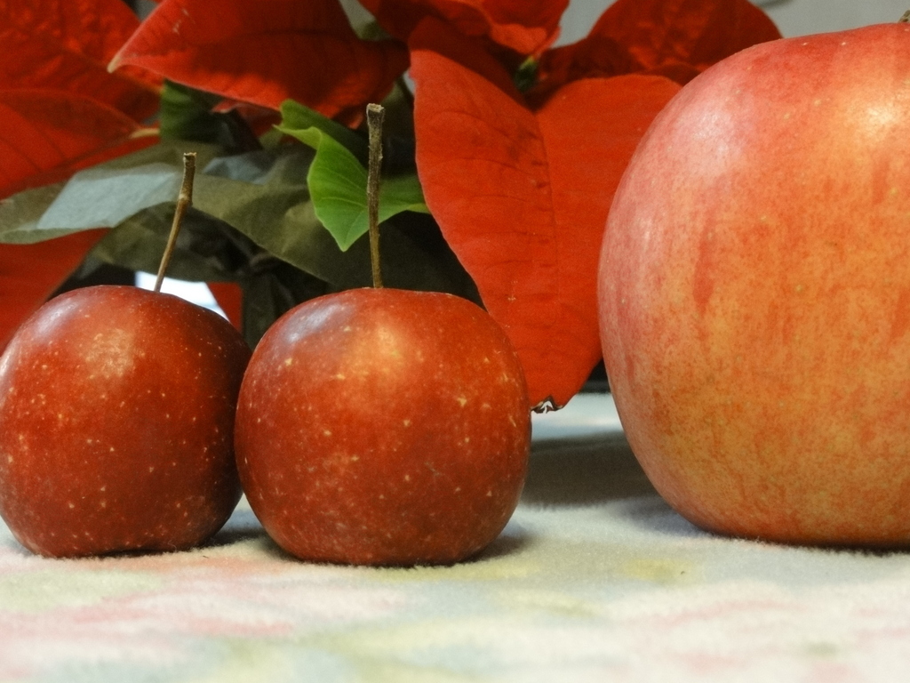 ポインセチアの赤とりんごの赤が華やかでクリスマスっぽいです(*^^*) リンゴジャムだ~いすきです^^ おいしそう~!