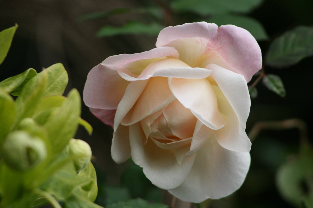 クリスマスローズフェティダスに寄り添う薔薇・・・優しいお母様みたい。