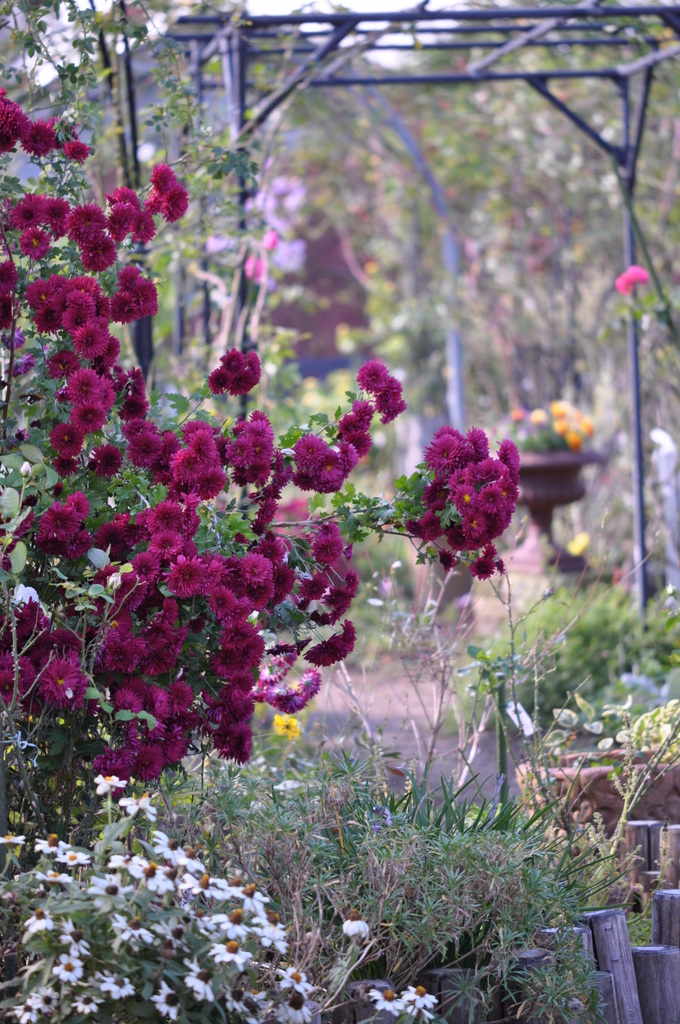 アーチに絡んで、確かに遠目に見たらバラに見えるかも(*^^*) この菊、色もキレイですものね!