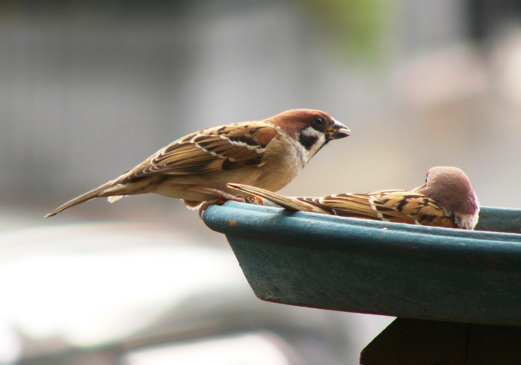 これは先日の写真と同じときですが、スズメの全身が綺麗に取れていると思います。スズメもなかなかオシャレで綺麗な小鳥ですね。