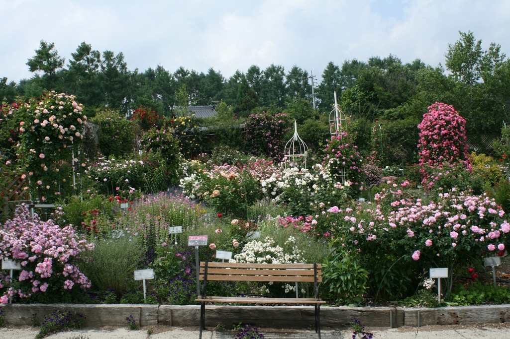 すっごくたくさん咲いてますね~!いわゆるバラ園と違って混植なので、個々のバラを撮るには踏み入る隙間もない感じですね。こうやって遠くから眺めるのが一番キレイかな~(*^^*)