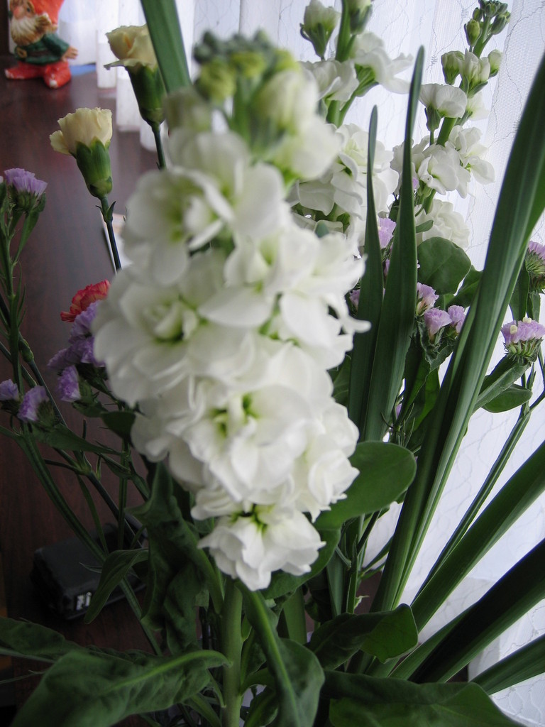 花言葉は「思いやり」です。ストックの茎を切ると、大根と同じ匂いがします。大根と同じアブラナ科なんです。~花屋さんからのまめ知識です~