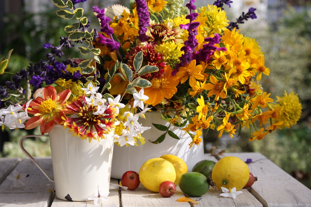 夏の花が、まだこんなに元気に咲いているのですネ!うちでもマリーゴールドなどは元気でしたが、先週すべて抜いてしまいました。ほっとくと1月でも咲いてるんです・・・なので強制終了^^;