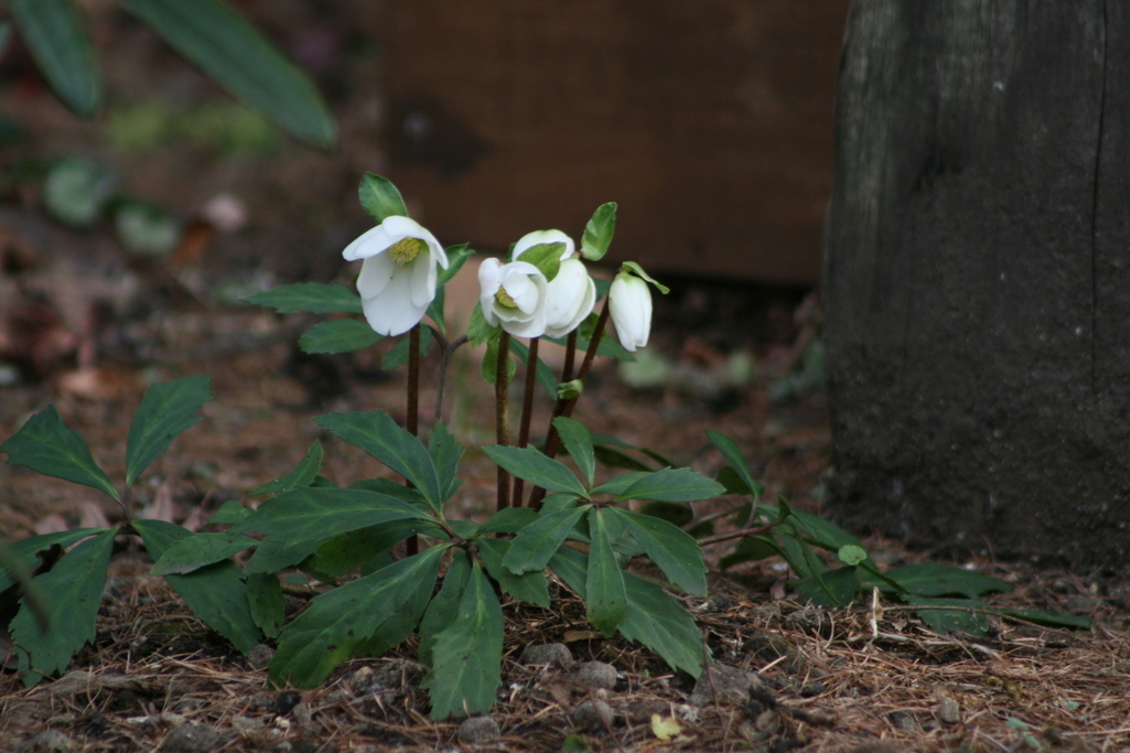 ニゲルの真っ白な花は冬の庭で目を引きますね。