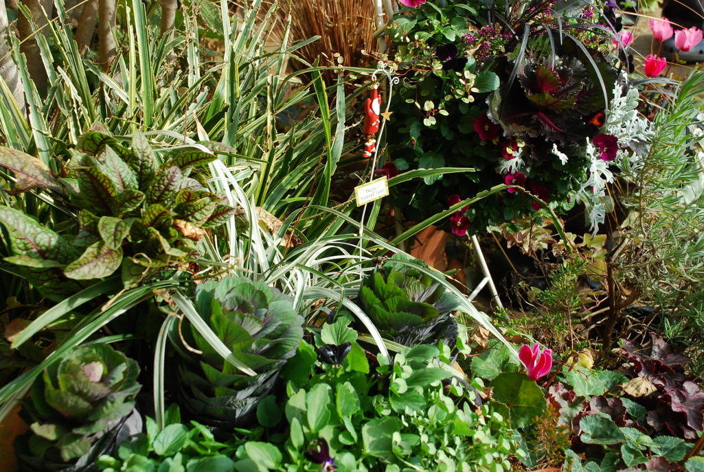 この季節らしい素敵な寄せ植えですね~!サンタの小物、似合ってますね(*^^*)