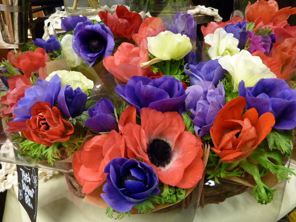 ずいぶん軸の太いアネモネですね。どきっとする色です。