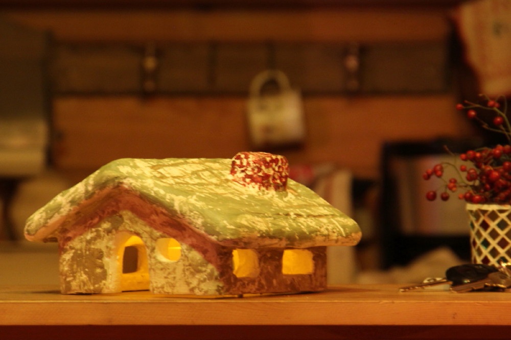 パパさん・・すご~い☆・・漆喰仕上げなんて職人みたい☆・・やわらかな灯り・・ほのぼのとしたお二人のおしゃべりが・・聞こえてきそうです・・車のキーが見えるような・・「ただいまあ~」っておいたところなのかな・・・・・・・・・私も同じのがほしい・・