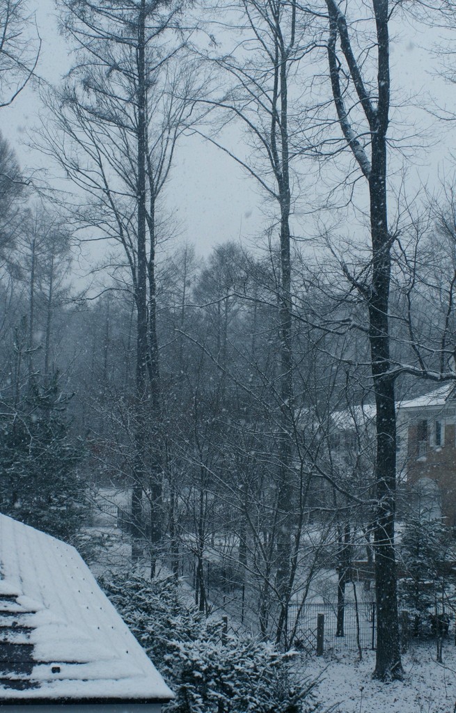 雪が降って・・モノトーンの世界・・背の高~い落葉樹がなんとも幻想的ですね
